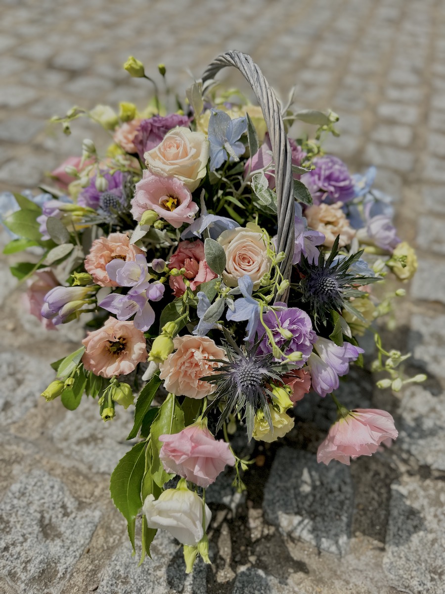 A pastel basket is a wonderful funeral tribute for a garden lover.